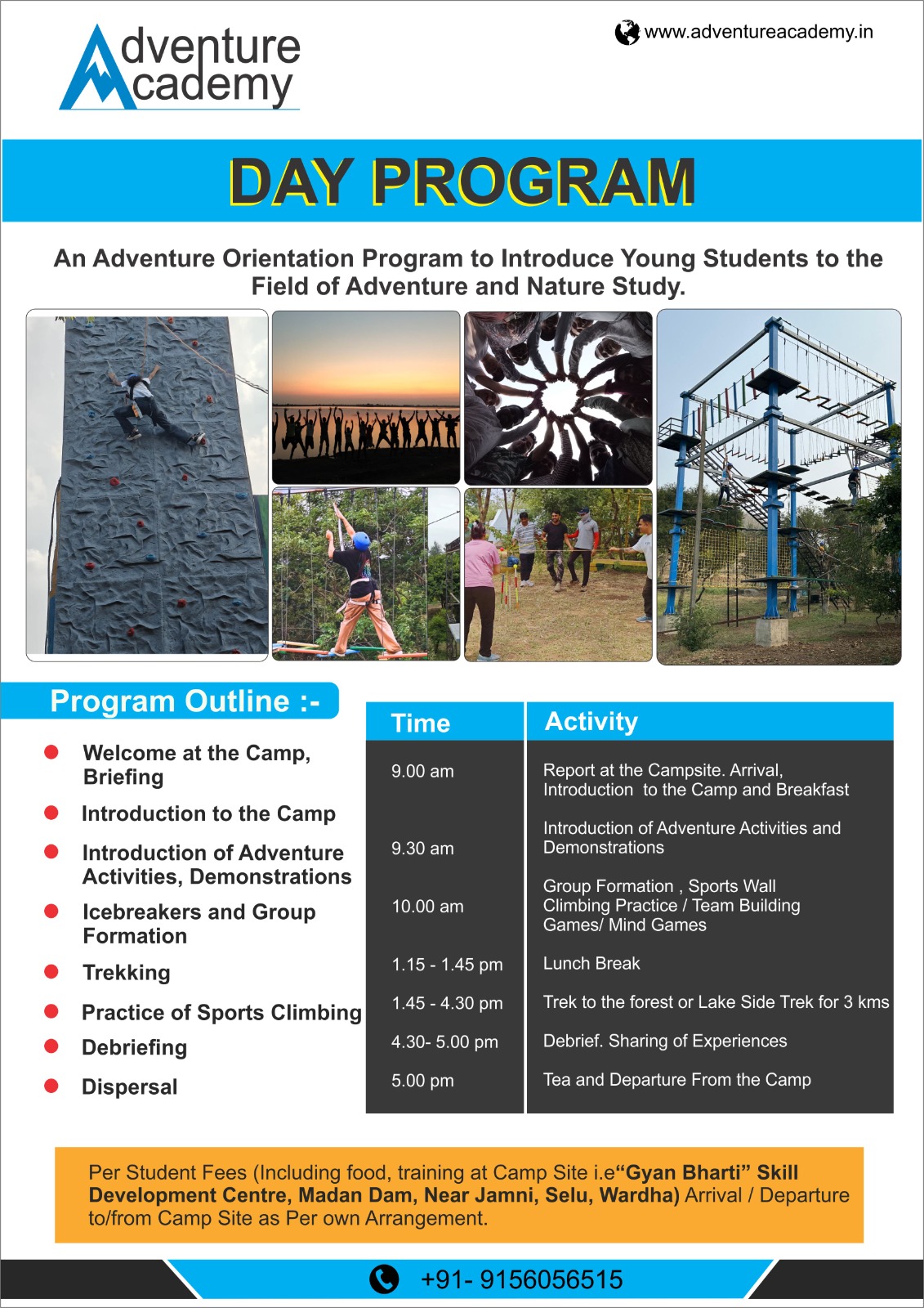 As participants are exposed to various climbing techniques, the complexity of challenge is gradually increased with newer rock faces and routes.